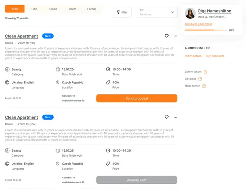 Створіть профіль на DoWork і почніть працювати з клієнтами напряму. Ви самі встановлюєте ціни, умови та графік. Платформа не втручається у вашу роботу та не бере відсоток із замовлень.